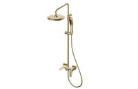 Душевая стойка VIAR с артикулом 28511VRG выполнена в цвете матового золота и оснащена смесителем из латуни. Включает керамический картридж SILENT OLIVE'S 35 мм и пластиковый аэратор OLIVE'S с увеличенной проходимостью. Комплектуется усиленным ПВХ шлангом No Twist длиной 1,5 м и подвижным держателем лейки. Душевая лейка Touch Clean диаметром 58 мм и верхний "тропический" душ диаметром 25 см обеспечивают комфортное использование. Высота стойки составляет 125 см, а керамический дивертор и комплект крепления завершают функциональность изделия.